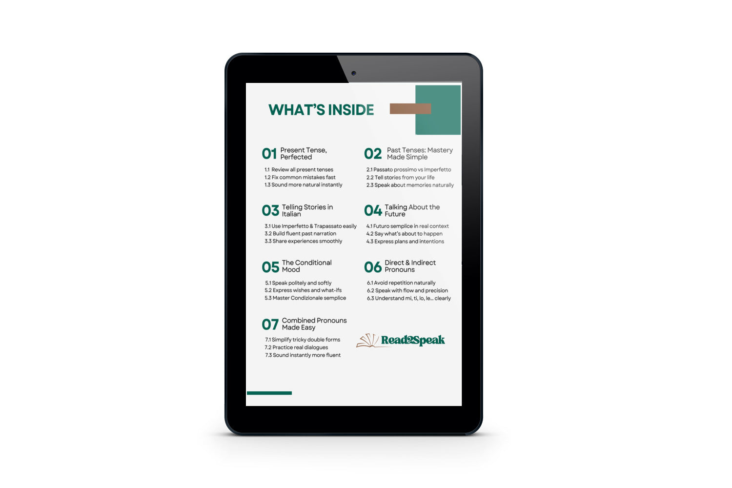 Italian Breakthrough (B1–B2) is a self-study eBook for learners who already have the basics and want to move towards fluency at B2 level.